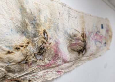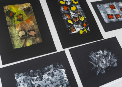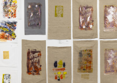Šių dviejų medijų sandūra kuria įtampą tarp lėto ir staigaus, tarp konstruojamo ir atsitinkančio. Tekstilė reikalauja laiko, kartojimo ir fizinio įsitraukimo, o monotipija fiksuoja momentą – dažo prisilietimą, spaudimą, klaidą ar atsitiktinumą. Abi kryptys susitinka bendroje jautrumo plotmėje, kurioje svarbus ne tik rezultatas, bet ir pats kūrybos procesas.